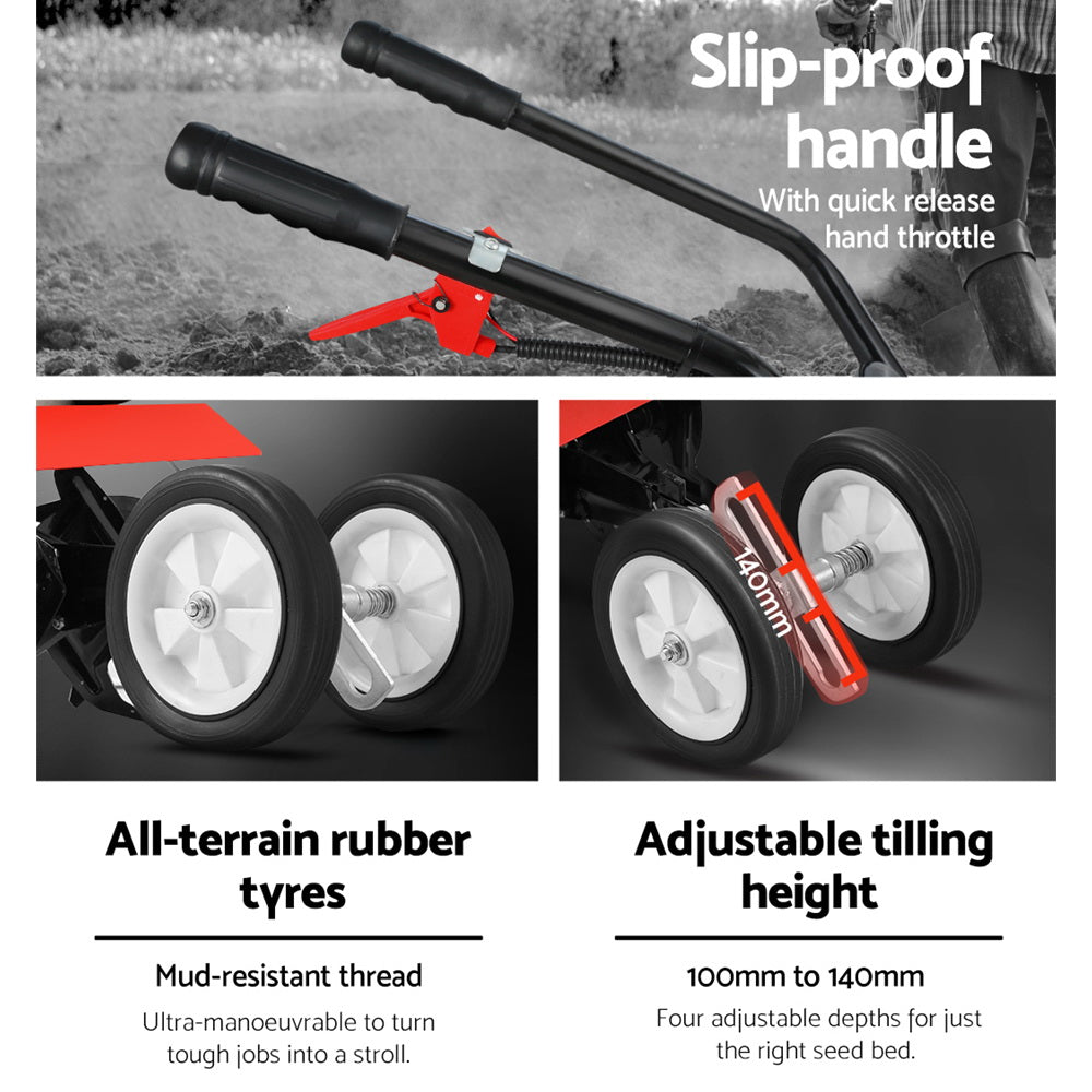 Giantz 88CC Tiller Garden Cultivator Rototiller 4 Blades Soil Plower Rotary Hoe