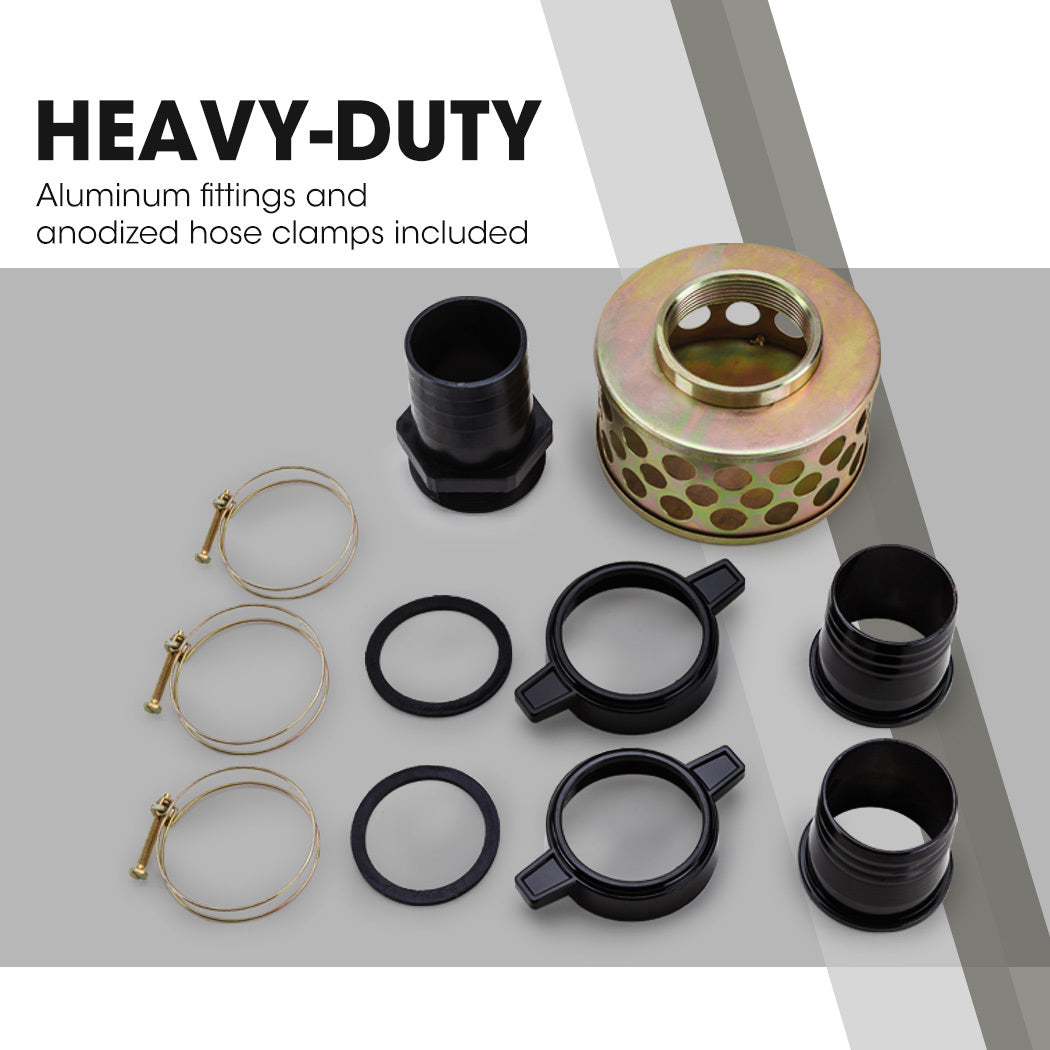 - Quality Fittings - unlike other brands that use plastic hose fittings, this Warton pump employs super strong aluminium fittings and corrosion resistant anodised hose clamps and strainer.