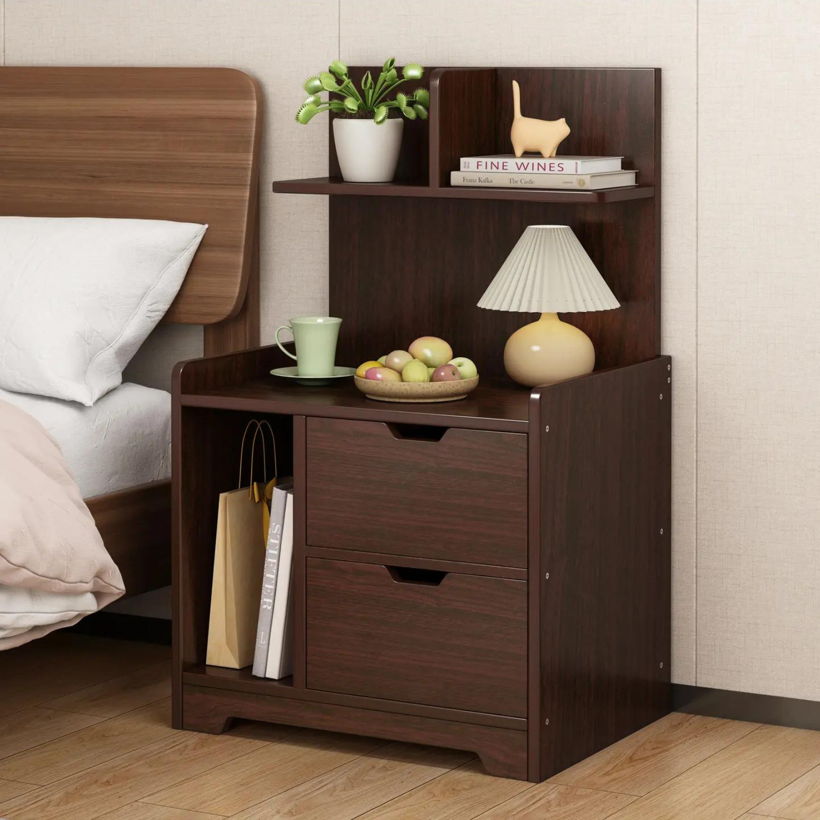 Utilizing vertical space, boasting impressive, large storage capacity, this charming piece of furniture has two spacious drawers and tall stylish shelves for extra storage and display options. Elegant style and unique intelligent design make the tall 2 drawer bedside chest with Shelves a must-have addition to your bedroom or living room. It has multiple uses, from a versatile side table to a handy bedside table for keeping your must-haves just an arm's length away.